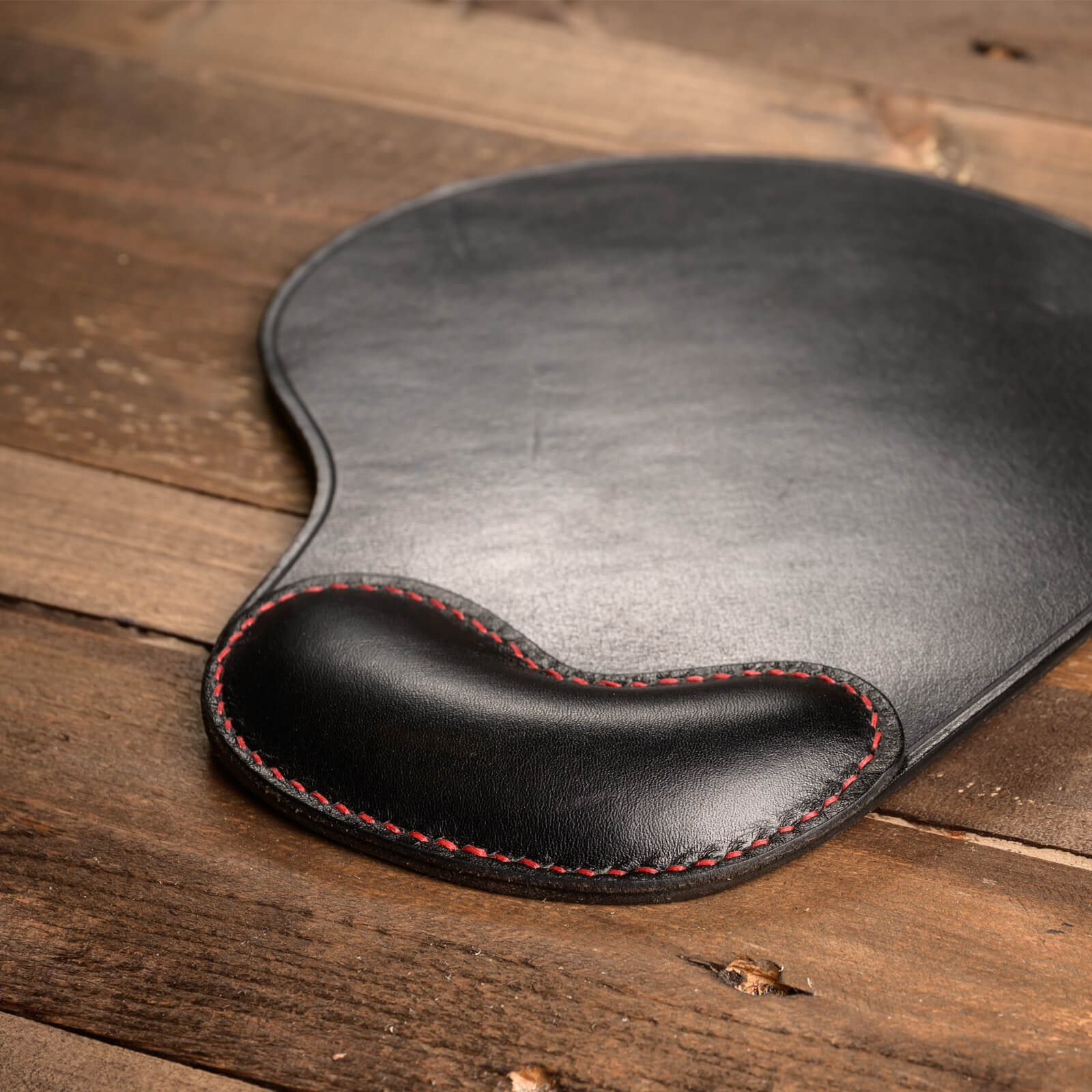 Δερμάτινο mousepad COMMA με εργονομικό σχεδιασμό και δυνατότητα χάραξης. Χρώμα μαύρο με κόκκινη ραφή. Ιδανικό για εργασία και gaming.