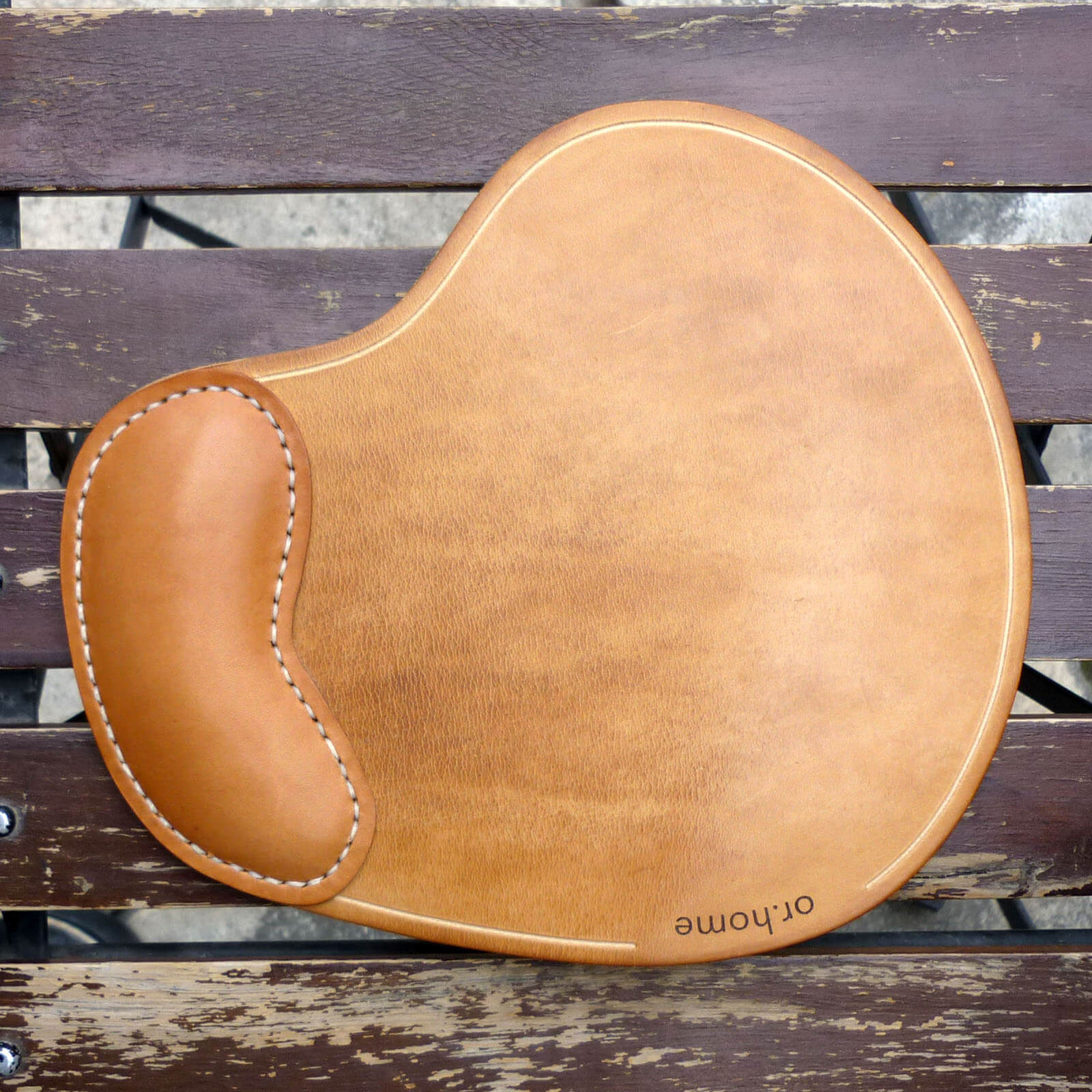 Δερμάτινο mousepad COMMA με εργονομικό σχεδιασμό και δυνατότητα χάραξης. Χρώμα ανοιχτό καφέ με λευκή ραφή. Ιδανικό για εργασία και gaming.