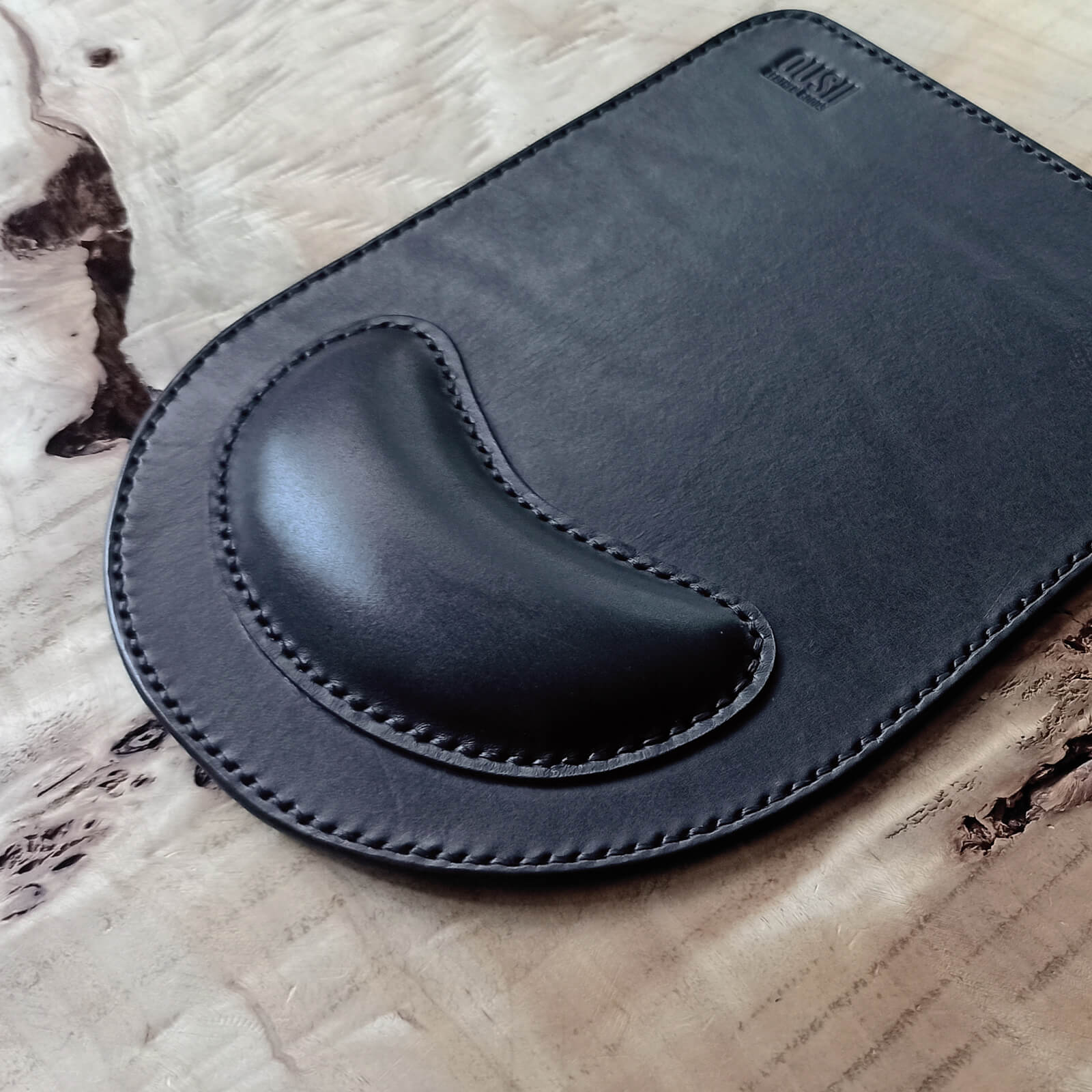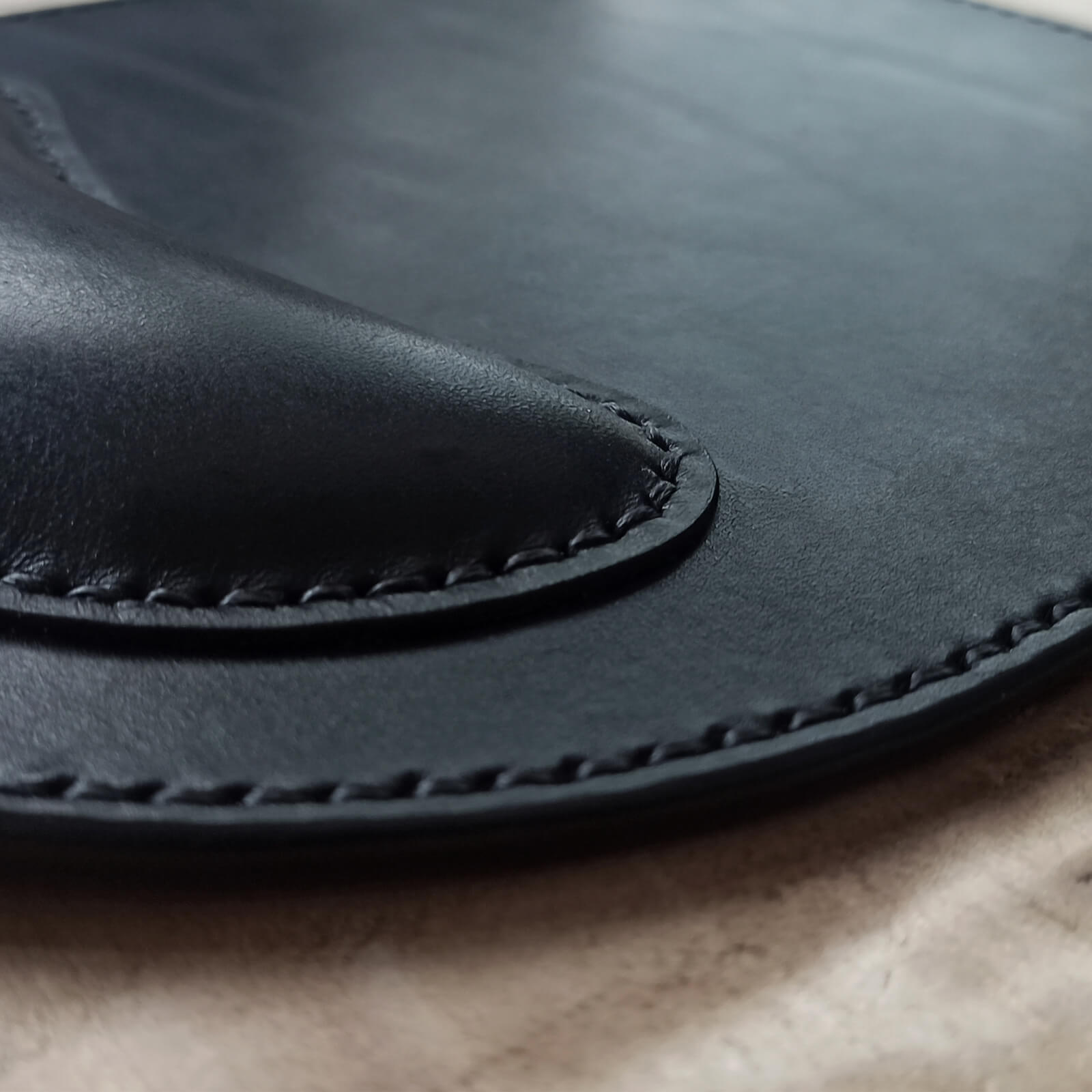 Δερμάτινο mousepad SEMI με εργονομικό σχεδιασμό και δυνατότητα χάραξης. Χρώμα μαύρο με μαύρη ραφή. Ιδανικό για εργασία και gaming.