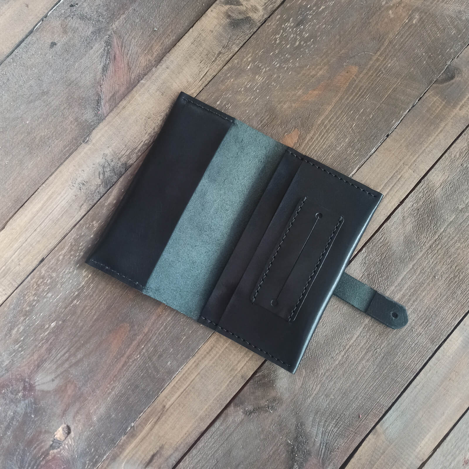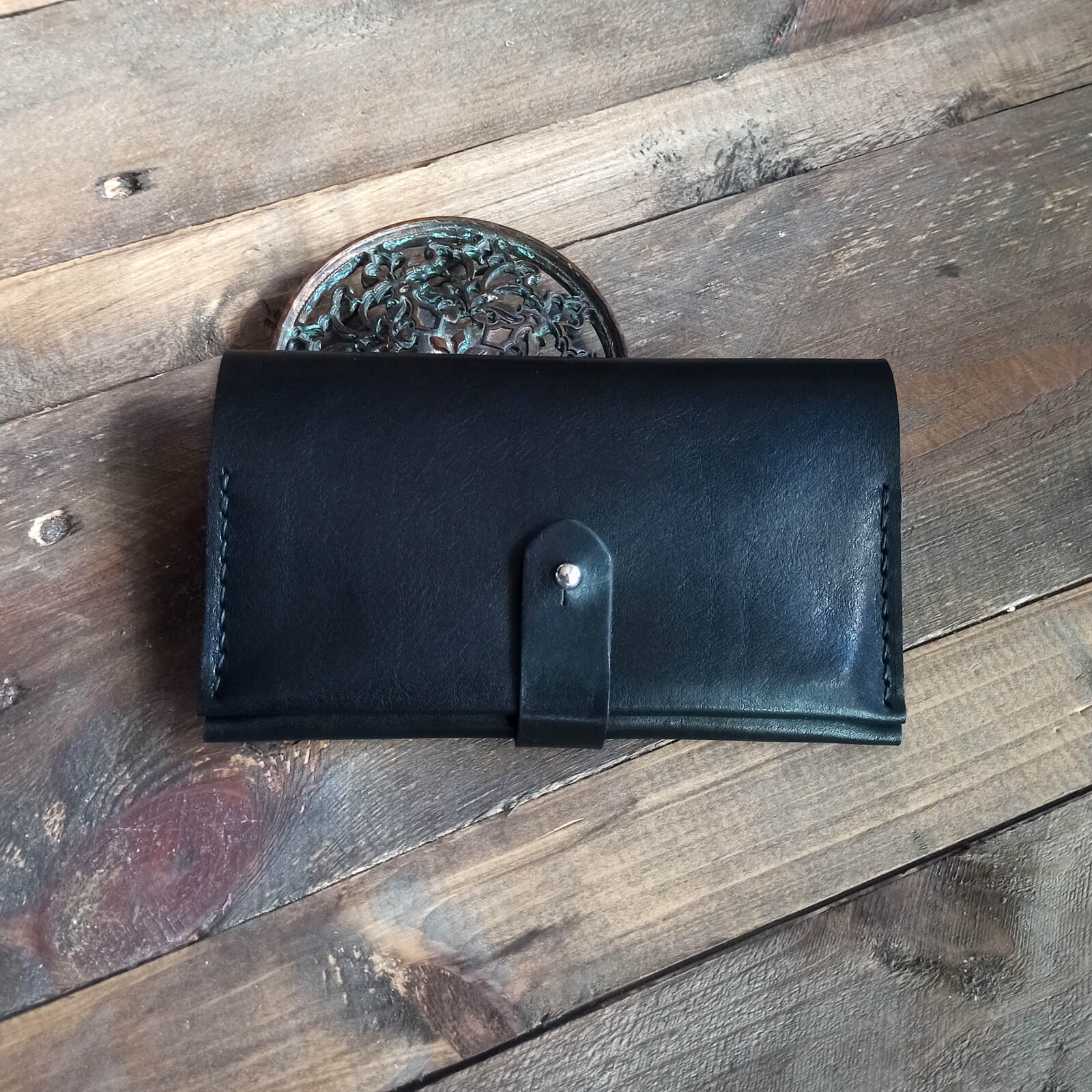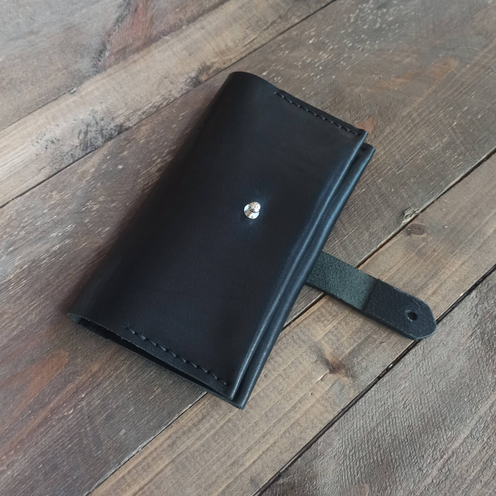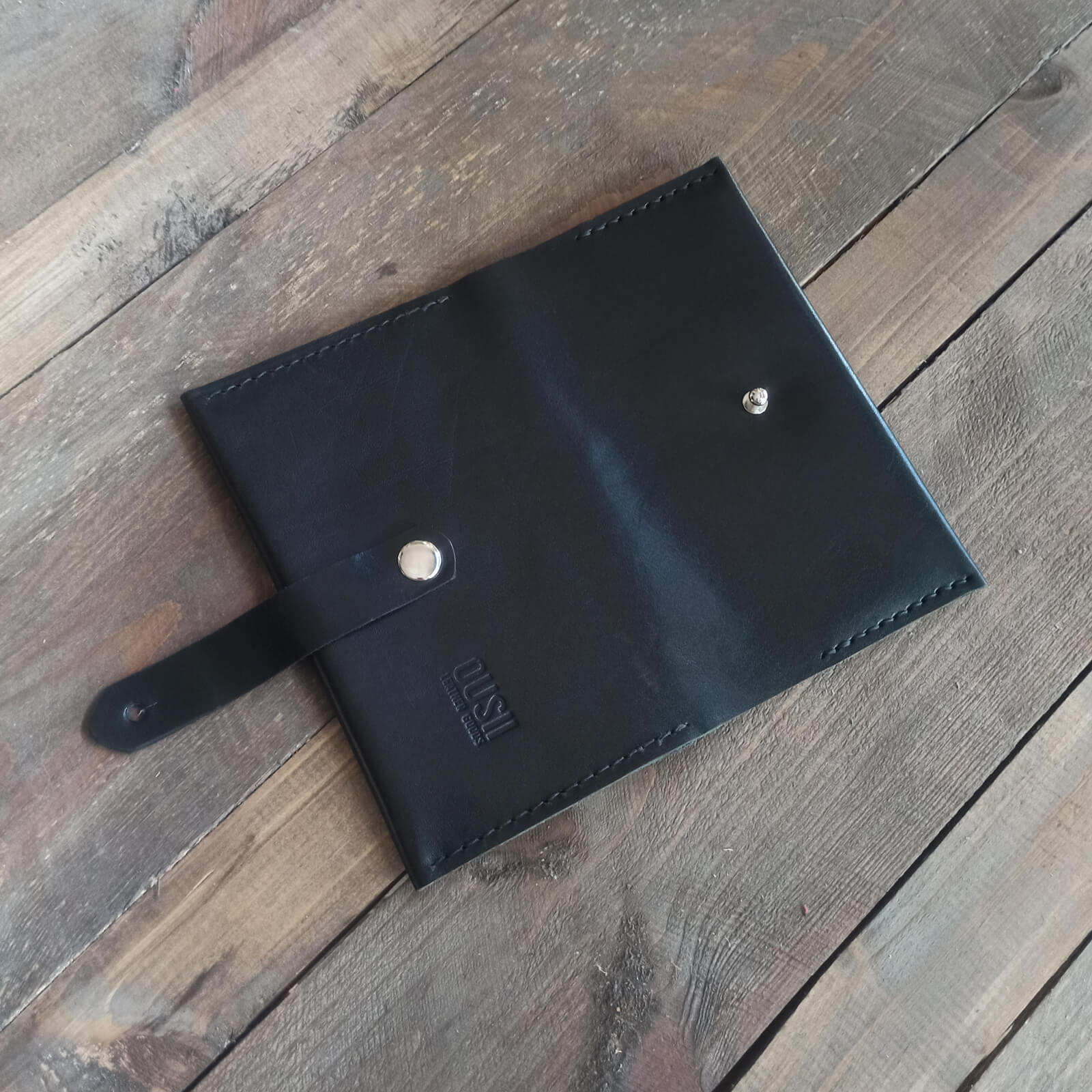 Χειροποίητη δερμάτινη καπνοθήκη με κουμπί κλεισίματος, φτιαγμένη από ιτατικό δέρμα υψηλής ποιότητας.