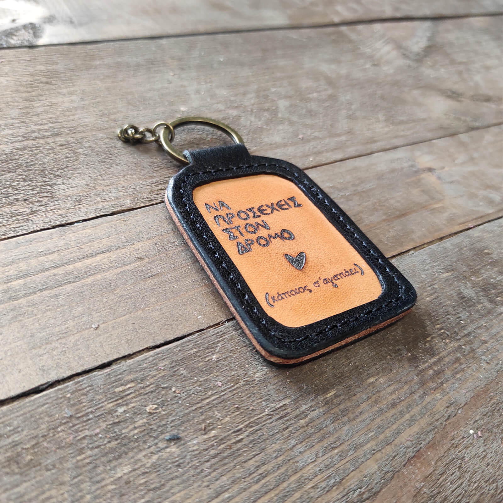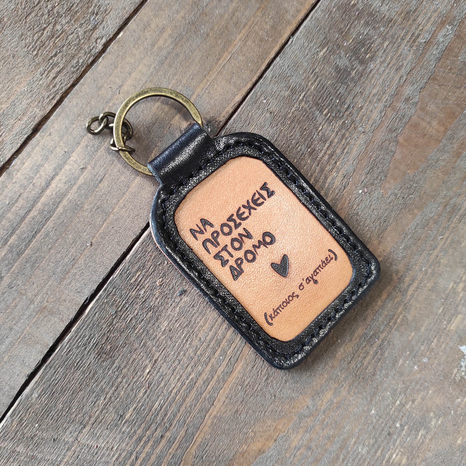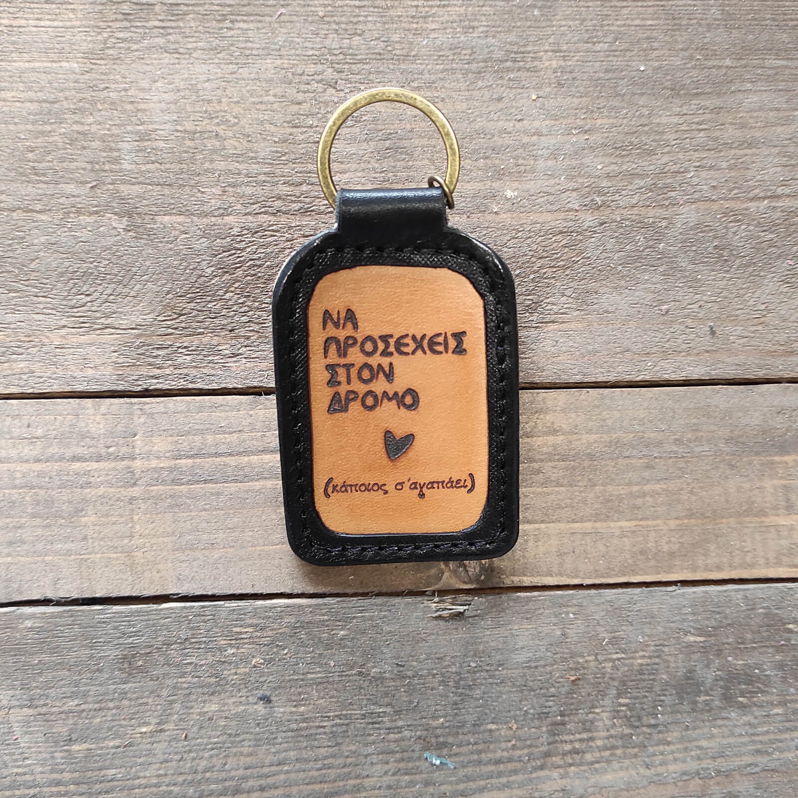 Δερμάτινο μπρελόκ κλειδιών με χάραξη "ΝΑ ΠΡΟΣΕΧΕΙΣ ΣΤΟΝ ΔΡΟΜΟ"