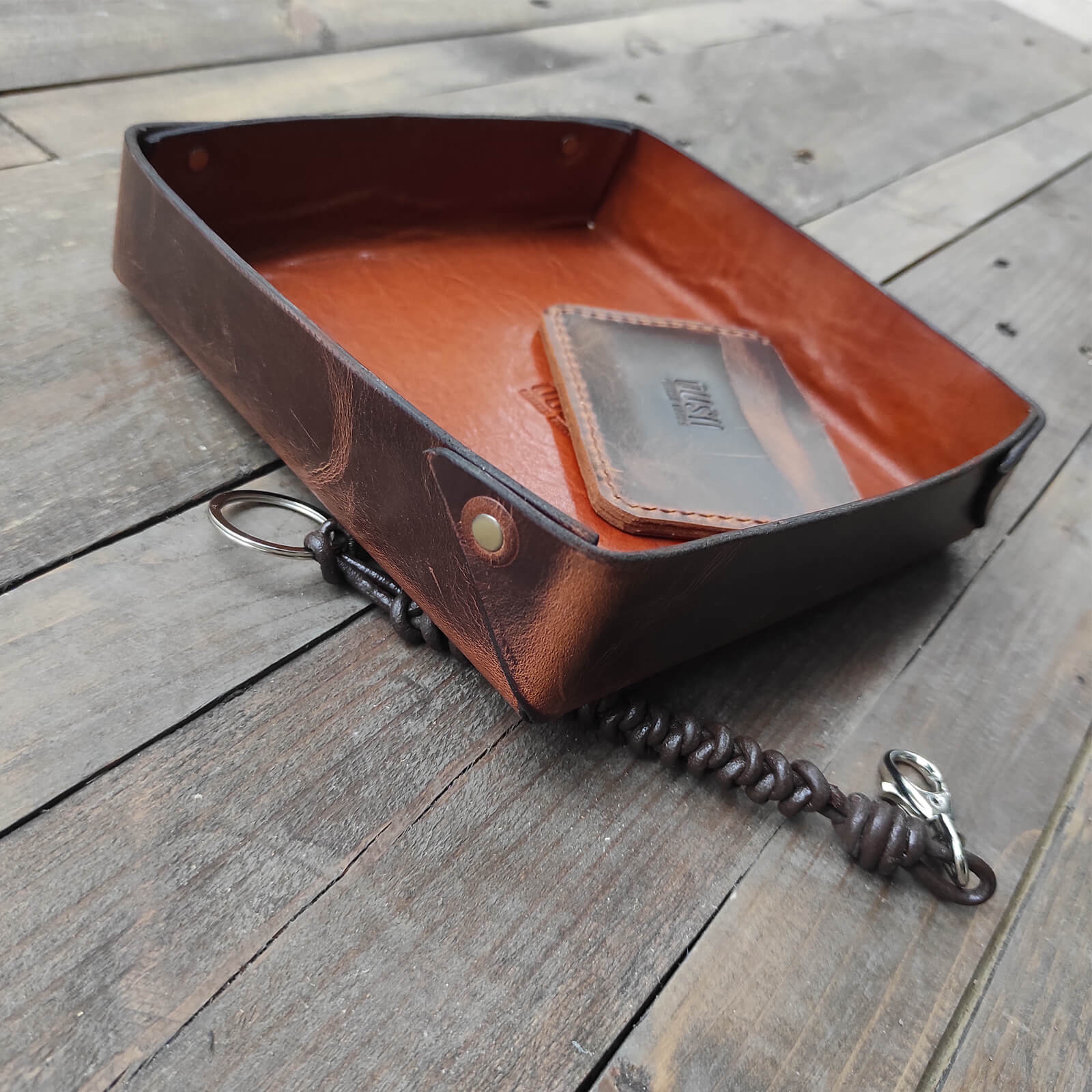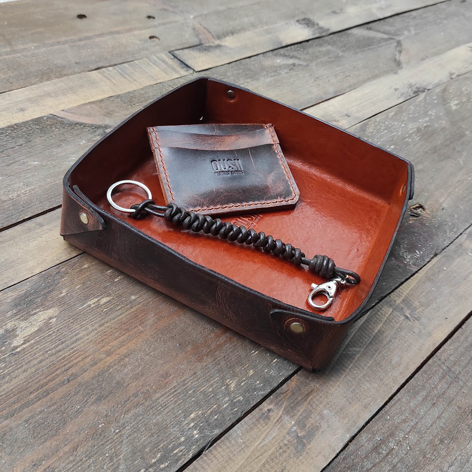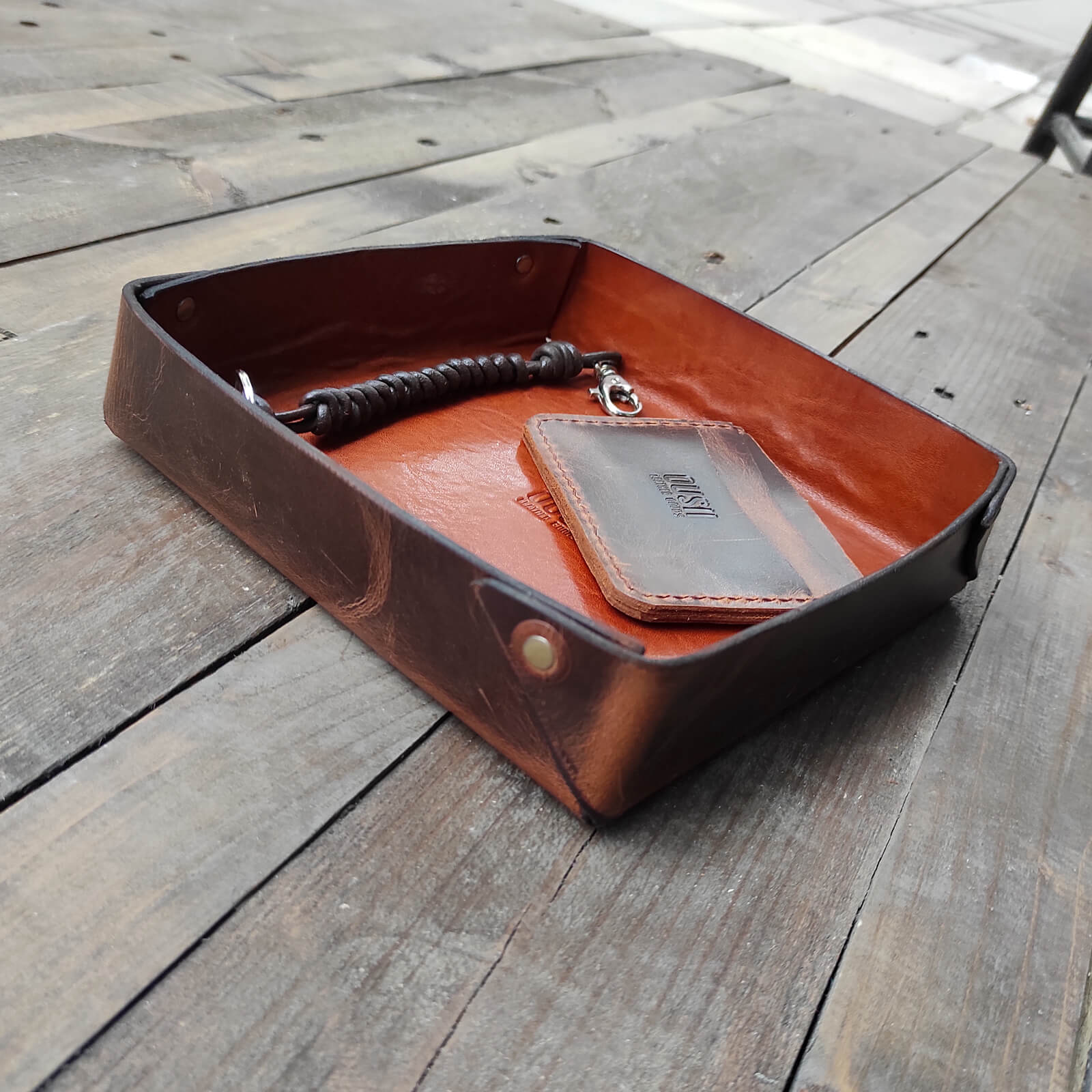 Τετράγωνος δερμάτινος δίσκος οργάνωσης για μικροαντικείμενα όπως κλειδιά, πορτοφόλι, ρολόι, κοσμήματα.
